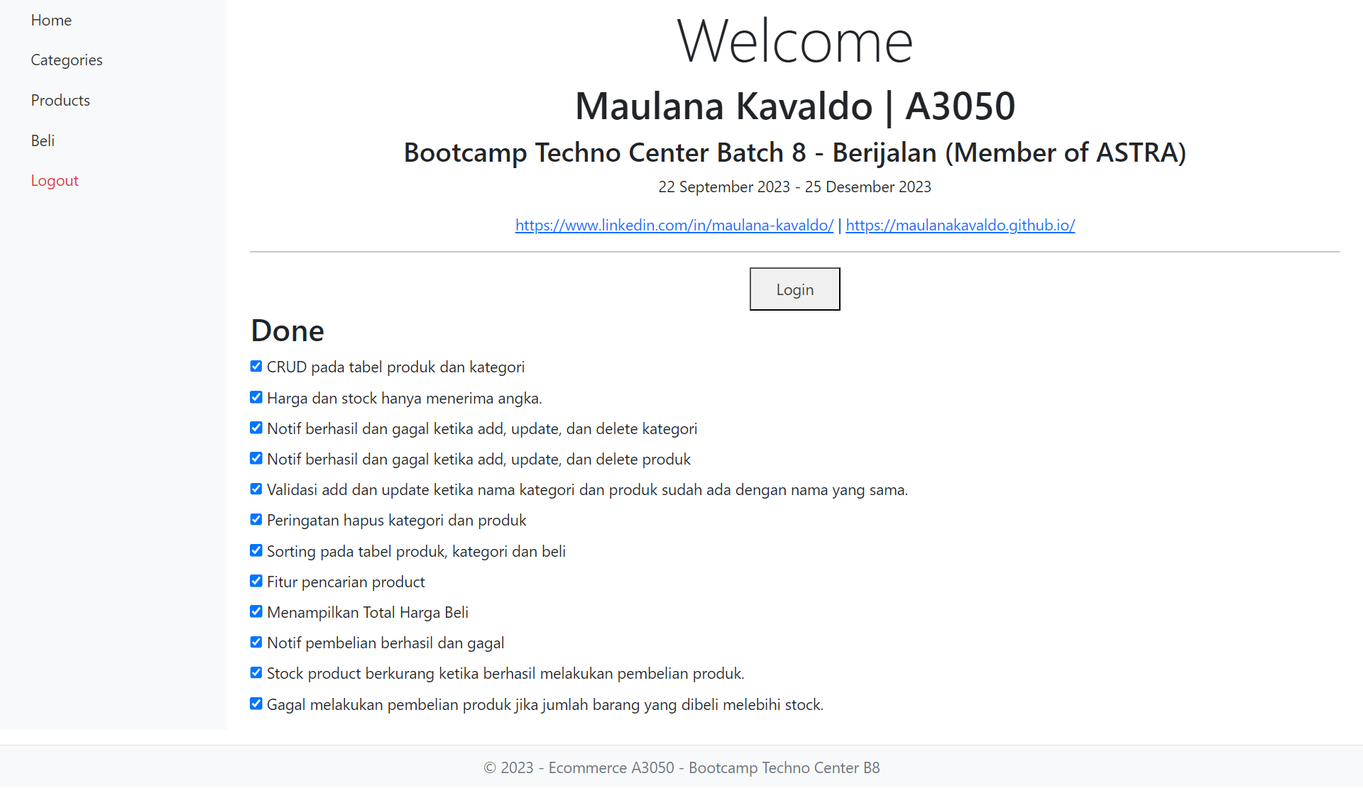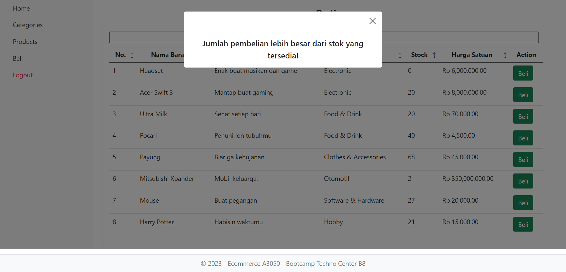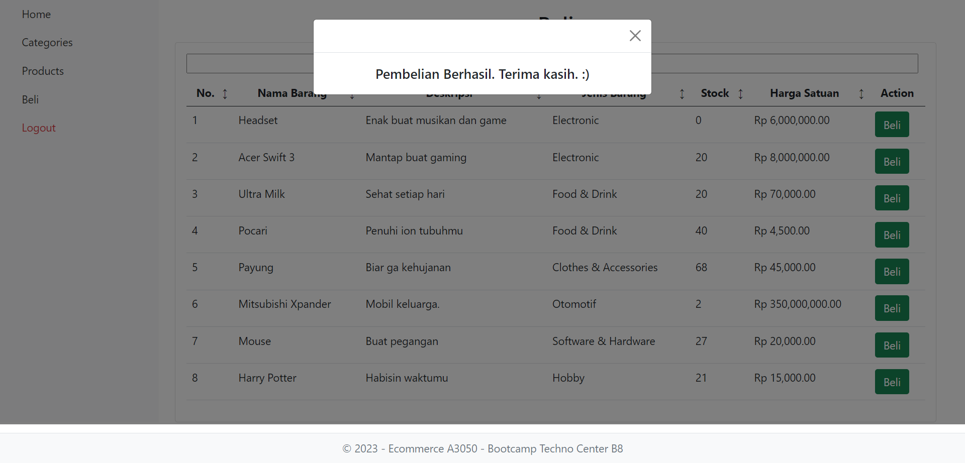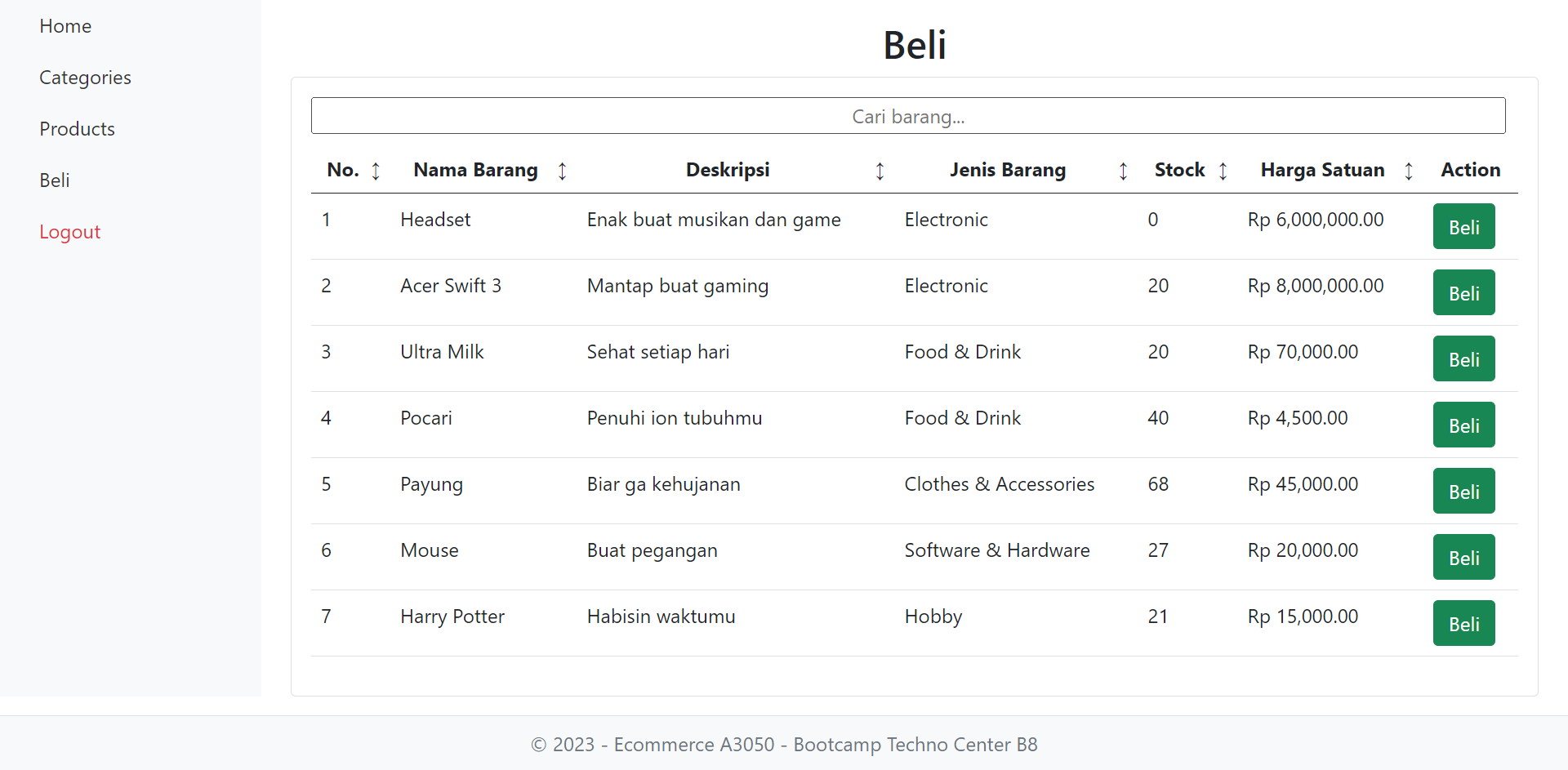 User ingin mempunyai sebuah website E-Commerce sederhana yang mempunyai fitur jual beli, Master Tipe Produk, dan Master Produk. User ingin website ini tidak mengakses secara langsung ke database untuk alasan keamanan. Sebelum melakukan transaksi maka pembeli harus log in terlebih dahulu dan setelah melakukan transaksi pembeli harus log out. Pembelian hanya bisa dilakukan untuk 1 tipe produk dalam 1 kali transaksi. Tidak ada batas transaksi yang bisa dilakukan oleh pembeli.