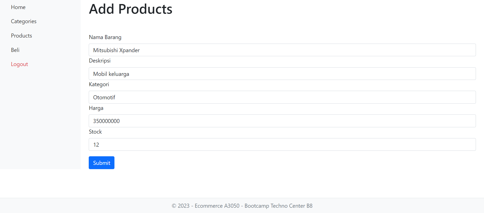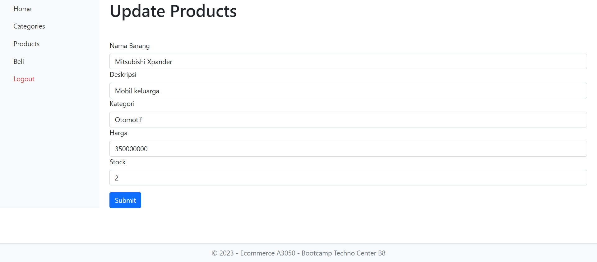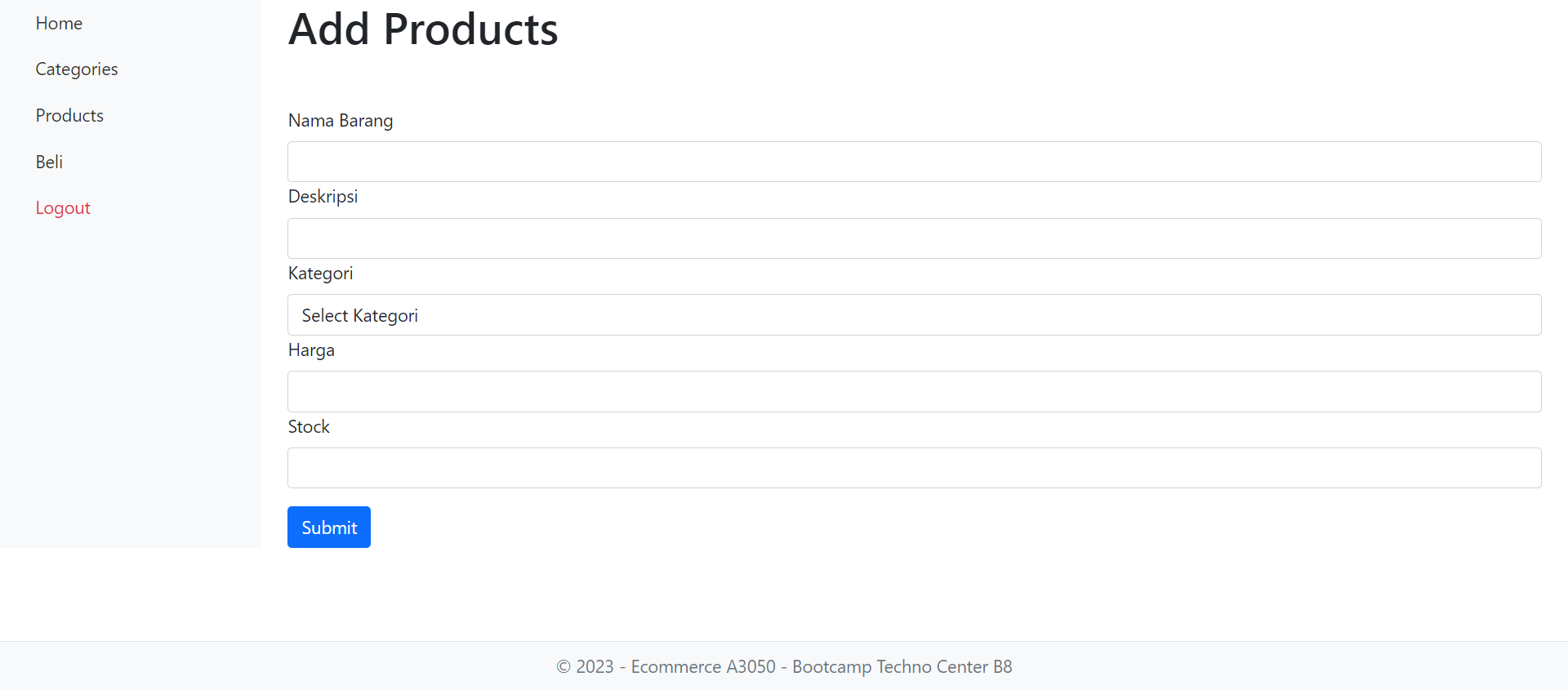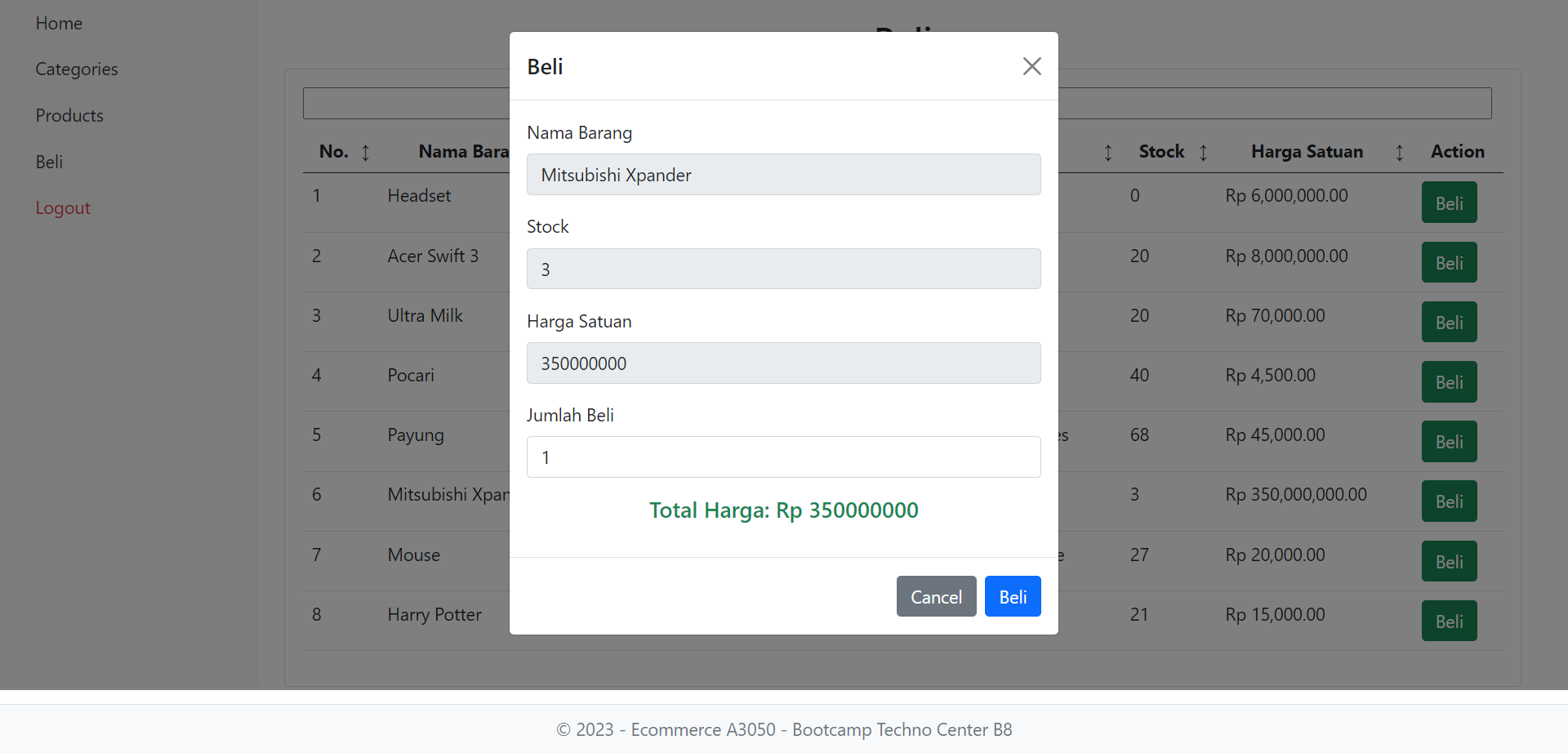 User ingin mempunyai sebuah website E-Commerce sederhana yang mempunyai fitur jual beli, Master Tipe Produk, dan Master Produk. User ingin website ini tidak mengakses secara langsung ke database untuk alasan keamanan. Sebelum melakukan transaksi maka pembeli harus log in terlebih dahulu dan setelah melakukan transaksi pembeli harus log out. Pembelian hanya bisa dilakukan untuk 1 tipe produk dalam 1 kali transaksi. Tidak ada batas transaksi yang bisa dilakukan oleh pembeli.