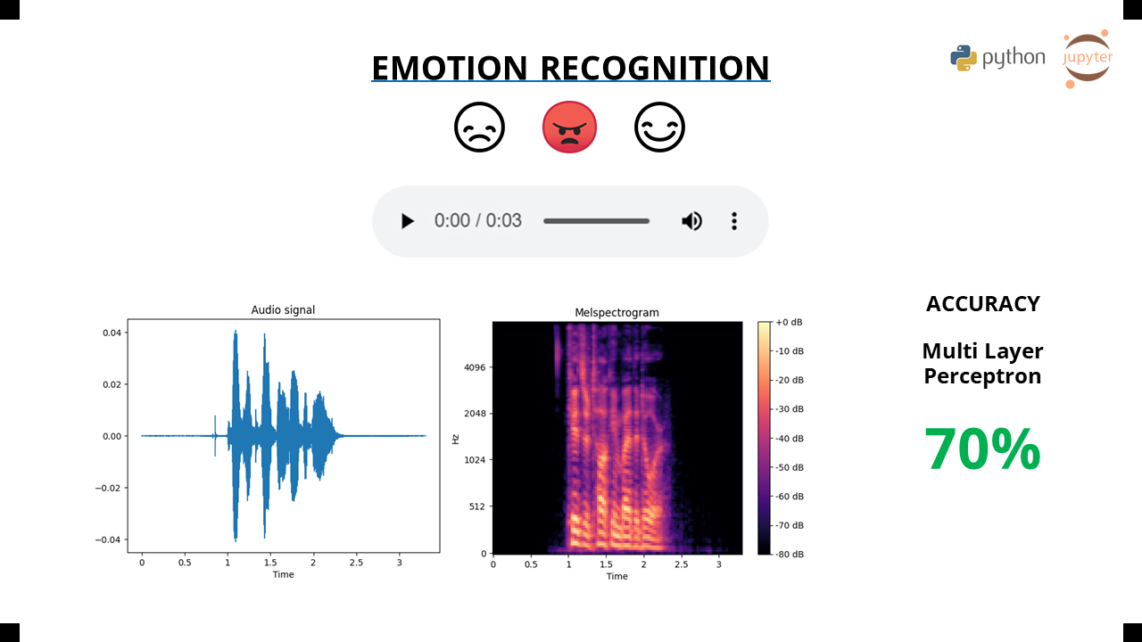 Tujuan dari project ini untuk melakukan klasifikasi emosi seseorang dengan menggunakan suara berupa hasil rekaman. Berbicara merupakan suatu cara yang umum untuk mengungkapkan suatu ekspresi atau juga emosi. Suara dapat memberikan gambaran bagaimana emosi seseorang yang berdasar pada nada dan pitch.