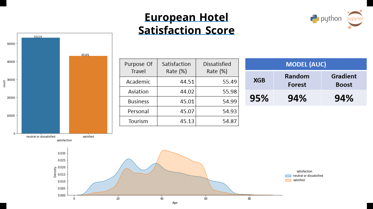 Through in-depth analysis, the main aim of the project is to identify possible patterns and trends behind guest satisfaction in European hotels. We will use machine learning and statistical techniques to build a model that can predict guest satisfaction levels based on various relevant variables. In addition, we will also provide valuable insights for hotel owners and managers who want to improve the quality of their services and optimize the guest experience.