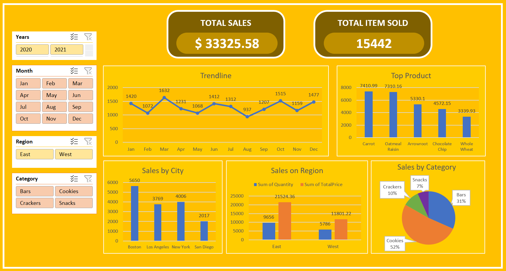 This project entails a comprehensive examination of sales data pertaining to snack food products across diverse regions, employing Microsoft Excel as the primary analytical tool. Through meticulous data analysis techniques, including but not limited to statistical methods, trend analysis, and visualization tools available in Excel, the project aims to derive meaningful insights into the sales performance of snack food products across different geographical areas. By scrutinizing sales patterns, identifying key market trends, and evaluating regional variations in consumer preferences, this analysis endeavors to provide valuable strategic recommendations for optimizing sales strategies and enhancing market penetration in the snack food industry.